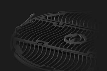 Важной конструктивной особенностью гриля PRO22K-LEG третьего поколения является то, что шиберная заслонка и нижняя заслонка для подачи воздуха расположены строго по оси гриля. Такое расположение заслонок, а также специальная форма крышки в совокупности с конусом, размещённым под колосниковой решёткой, образуют систему VORTEX™. С помощью такой системы угли равномерно разгораются и под крышкой формируются симметричные конвекционные потоки горячего воздуха. Благодаря этому происходит равномерное распределение жара по всей рабочей поверхности гриля. Используя систему VORTEX™, вам не придётся поворачивать крышку или вращать решётку для того, чтобы продукты на рабочей поверхности равномерно пропекались.